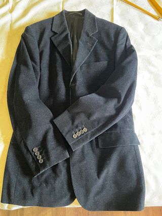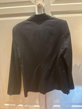 Americana de vestir Pedro de Hierro en color azul. Un clásico para cualquier armario. Talla 54. Corte entallado. Cierre de dos botones. Bolsillos de solapa. - Forro interior y bolsillos interiores. Detalle de pespuntes. Dos de los botones de un lado estan partidos, no se ve al ponerla (ver foto 5) medidas: Hombro-hombro 50 cm axila axila 46 cm Largo 77 cm. brazo 67