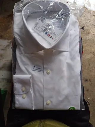 Camisa de vestir blanca de la marca Pedro del Hierro. Presenta un diseño clásico y elegante, ideal para ocasiones formales o para el día a día. - Cuello camisero. - Cierre de botones. - Puño con botón. - Tejido Non-Iron anti-arrugas. No se cambia por tallaje erroneo Precio original 95,90