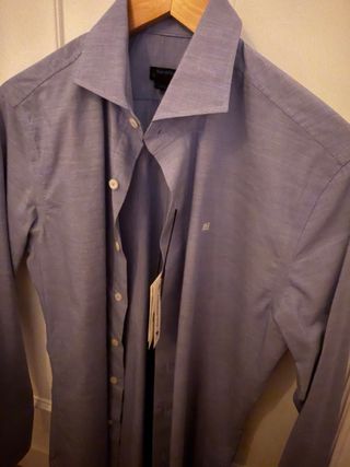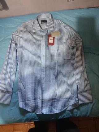 Se vende bonita camisa de vestir y Sport azul y blanca de Pedro del Hierro. Regular fit, en una talla 45eu, 11us. Tacto muy suave, non-iron o poco planchado y super cómoda. Dimensiones: hombro a hombro 52ctms. Axila a axila 58 ctms. De cuello a abajo 75ctms. Largo mangas de 68ctms. Totalmente nueva, sin estrenar ni probar. Su precio nuevas es de 89€. Precio algo negociable. Envío a cargo del comprador. No envío contrareembolso. No hago intercambios por ningún otro producto lo o artículo. Acepto Paypal, Bizum, Wallapop. No escucho ofertas absurdas y bloqueo. Gracias