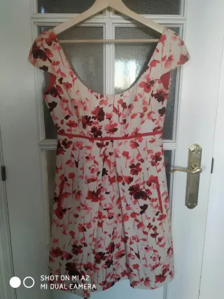 Vestido de Pedro del hierro de estampado de flores con cinturón y bolsillos, tiene forro interior como se ve en las imágenes. Está en perfecto estado prácticamente a estrenar. Medidas: De axila a axila 46cm Cintura 40cm Largo vestido 96cm - Cuello camisero. - Cinturón de tela a juego. - Falda de vuelo.
