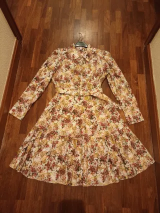 Vestido midi con un bonito estampado floral y mangas largas. - Diseño con cuello redondo. - Largo hasta la rodilla. - Tejido ligero y fluido. - Talla 40, pero es como una 36-38