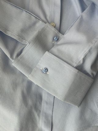 Camisa de vestir de Pedro del Hierro con un diseño de rayas finas. - Color azul y blanco. - Cuello clásico. - Puño con gemelos. - Esta sin estrenar.