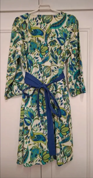 Vestido de manga corta con un bonito estampado floral. Solo se ha puesto dos veces. - Diseño cruzado. - Cinturón a juego. - Largo midi.