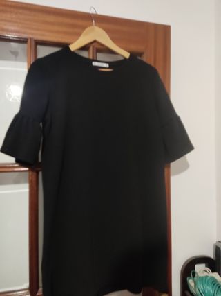 Vestido negro con detalles de volantes y botones. Es de pull and bear en talla S Solo me lo he puesto una vez para una ocasión.
