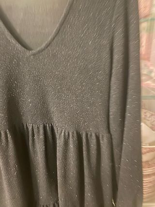 Precioso vestido negro lurex pull&bear talla S Precioso vestido negro de Pull&Bear, talla S. Es una prenda elegante y cómoda, ideal para cualquier ocasión. - Diseño de corte imperio con vuelo. - Manga larga. - Tejido con textura lurex brillante.