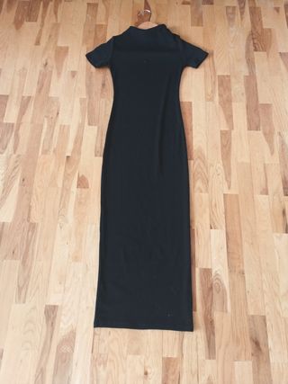Precioso vestido midi de Pull&Bear, color negro, nuevo con etiqueta. Es entallado y tiene un detalle de abertura en el pecho. - Talla: M - Tejido: Lycra.