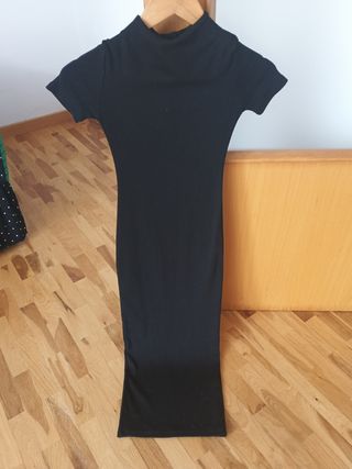Vestido Pull&Bear negro, rayas verticales midi, talla S, poco uso