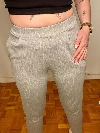 Pantalón de vestir de Pull&Bear en color gris. Diseño elegante y moderno. - Corte recto. - Cintura con trabillas. - Cierre de botón y cremallera. - Dos bolsillos laterales. - Costuras marcadas en la parte delantera.