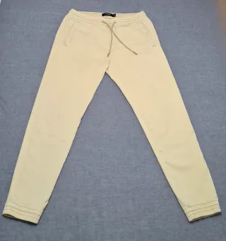 Pantalón de vestir casual en color beige. - Cintura elástica con cordón ajustable. - Bolsillos laterales. - Puños elásticos en los tobillos.