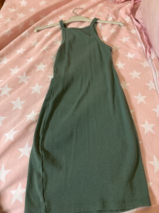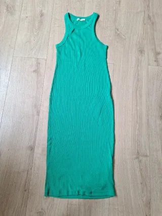 Vestido de canalé de Pull&Bear, talla M-L. Un básico versátil para tu armario. - Diseño de canalé. - Corte ajustado. - Tirantes anchos.