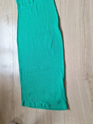 Vestido largo de canalé en un llamativo color verde. Su diseño sin mangas lo hace perfecto para climas cálidos. - Tejido elástico acanalado. - Corte ajustado. - Cuello redondo. - Largo midi.