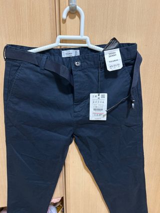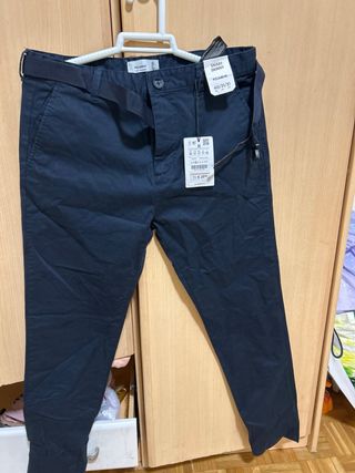 Pantalón de vestir Pull&Bear estilo Smart Skinny. - Incluye cinturón de tela a juego. - Cierre de botón y cremallera. - Bolsillos delanteros y traseros. Es ropa de hombre nueva. Mi hermano la compró en su momento pero jamás la usó.