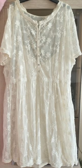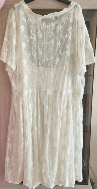 Vestido de gasa,color beige,puesto una vez. Color talla L.