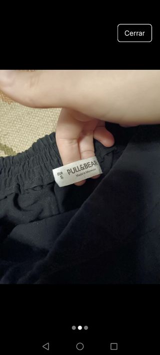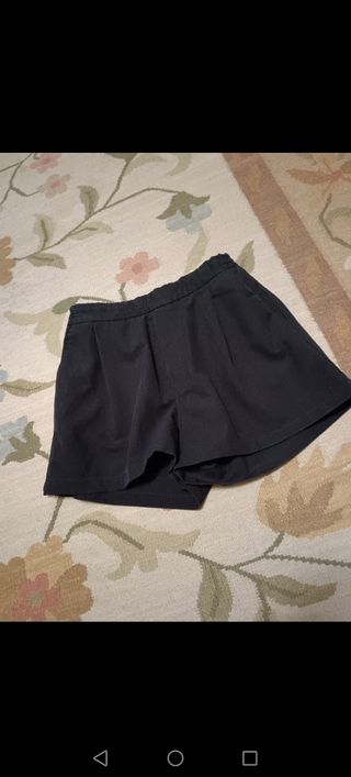 Pantalones cortos negros de la marca Pull&Bear, talla S (equivalente a 36 u 8). Son elegantes y de corte recto. - Tienen un diseño plisado en la cintura. - La tela parece suave y de buena calidad. - Perfectos para un look casual o de vestir.