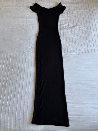 ℹ️ Vestido ajustado largo de manga corta y textura a rayas de color negro 🏷️ Pull & Bear 📏 Talla S: mide 126cm de largo desde el hombro (ver en fotos) y se ajusta muy bien al cuerpo porque es muy elástico 🪡 Usado en una ocasión, se encuentra en perfecto estado y sin imperfecciones 🧶 Le quité la etiqueta de composición por comodidad, pero es elástico y muy agradable al tacto 📲 ¡No dudes en preguntarme cualquier cosa! 💰 Precio negociable