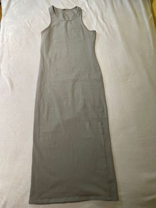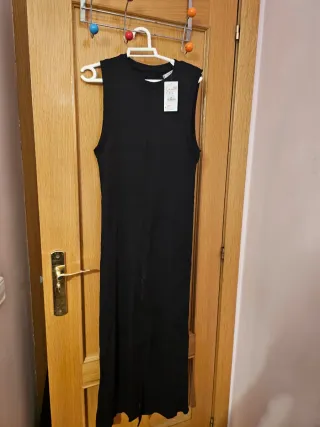 Vestido largo negro de Pull&Bear, nunca usado, es decir está sin estrenar, presenta etiqueta. - Diseño de canalé. - Sin mangas. - Largo. - Abertura trasera y delantera.