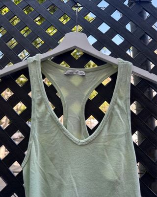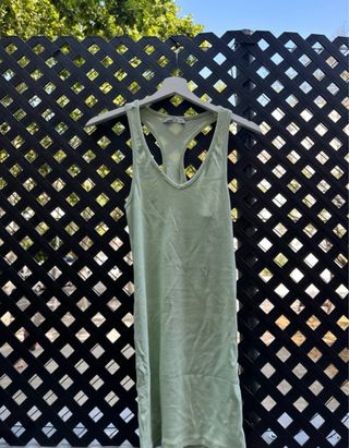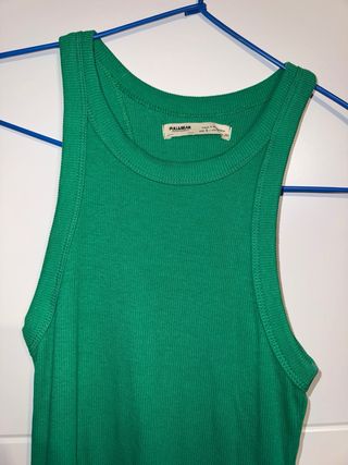 Vestido largo de tirantes en color verde. - Diseño ajustado. - Cuello redondo. - Tejido de canalé.