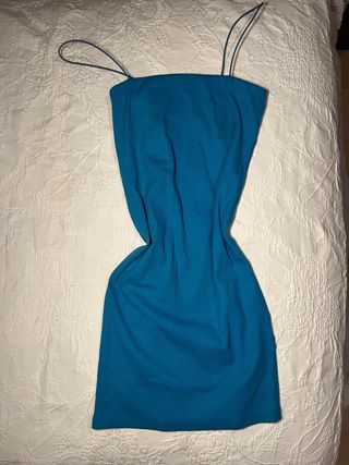 Vestido azul con un diseño ceñido y tirantes finos. - Tejido elástico. - Corte recto. - Tirantes finos ajustables. precio no negociable solo envíos