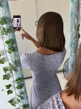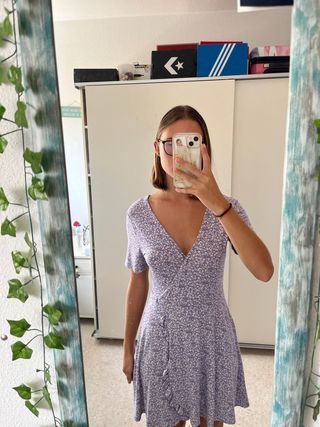 Vestido corto con un diseño moderno y favorecedor. Pone talla l pero es pequeñaas bien s - Tejido texturizado. - Corte evasé. - Escote en V.