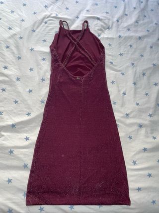 Vestido Pull&Bear color berenjena con brillo - Diseño ajustado. - Tirantes finos y cruzados y espalda descubierta
