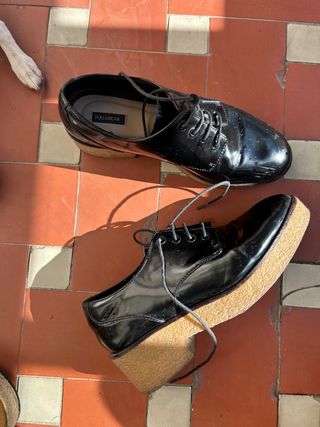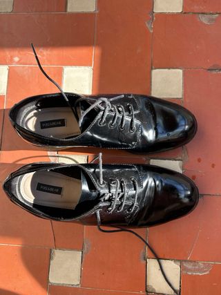 Zapatos de vestir negros de la marca Pull&Bear. - Diseño clásico con cordones. - Acabado brillante. - Suela gruesa.