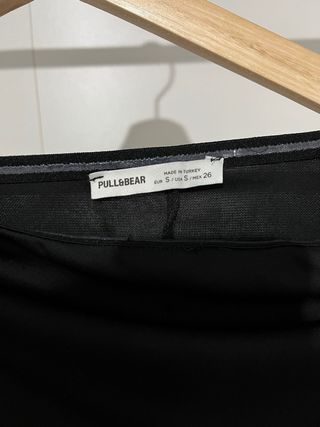 Me gustaria vender este vestido PULL&BEAR. Es un vestido negro con un diseño muy elegante y un brillo sutil. - Marca: PULL&BEAR. - Talla: S. - Color: Negro. - Fabricado en Marruecos.