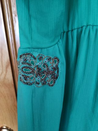 Poco usado, tiene algunos descosidos en el bordado de la falda (ver fotos). Posibilidad de poner el cinturón en dos posiciones diferentes. 100 % algodón.