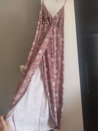 Precioso vestido largo con estampado floral. Es de color rosa con flores blancas. Queda increíble. Abertura en la pierna. Usado sólo una vez para las fotos. HAGO ENVÍOS