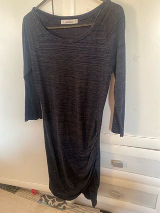 Vestido ancho de pull and bear talla S yo uso XS normalmente me lo compre para que me quedase oversice. Color burdeos y negro. Con un cinturón queda muy bien. Es fluido súper como y vale tanto para verano como para invierno con unas botas. Tiene tiempo y le ha salido alguna bolita que no se aprecia casi. - Manga tres cuartos.
