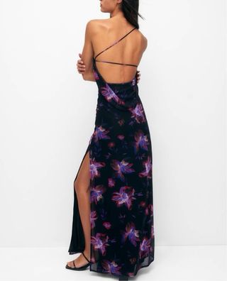 Vestido largo floral asimétrico