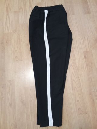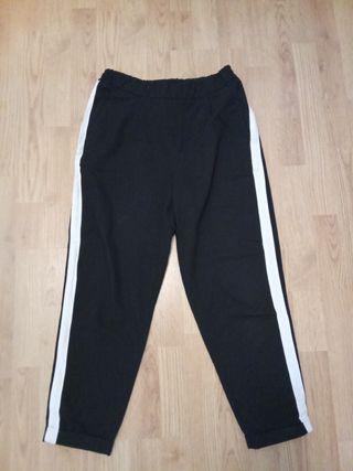 Pantalón de vestir negro de la marca Pull&Bear. - Talla M. - Diseño con raya lateral blanca. - Cintura elástica.