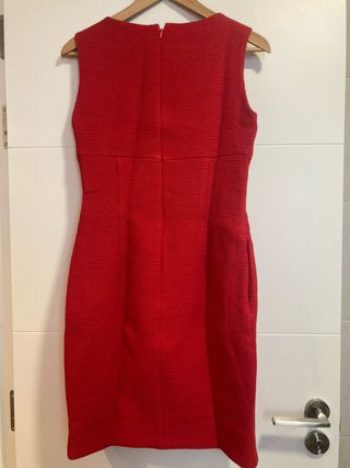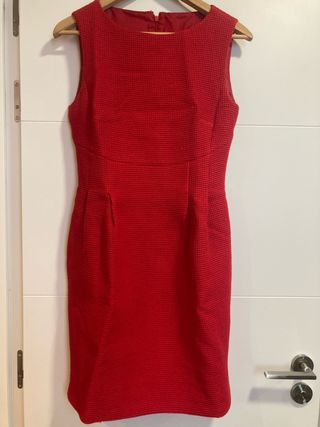 Precioso vestido de Purificación García, talla L (equivalente a 40 o 12), en color rojo. Es una prenda elegante y de corte favorecedor. - De manga corta. - Con bolsillos. - Detalle de botones dorados.