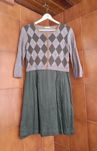 Vestido 👗 PG sport. Hecho de lana y algodón. Parte superior color marrón e inferior verde oscuro.