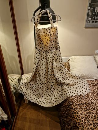 Vestido lunares Purificación García beige/negro