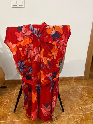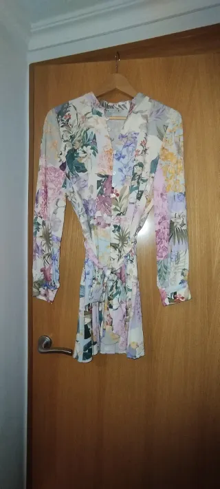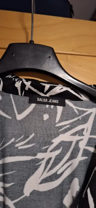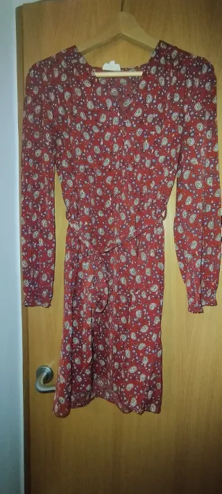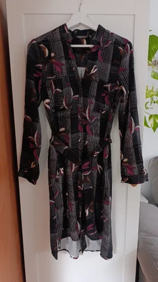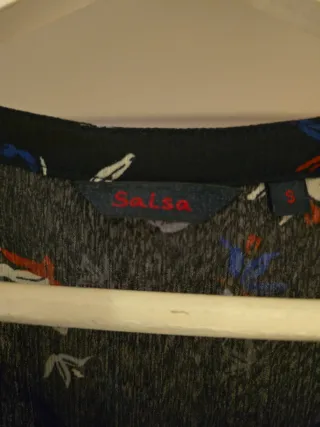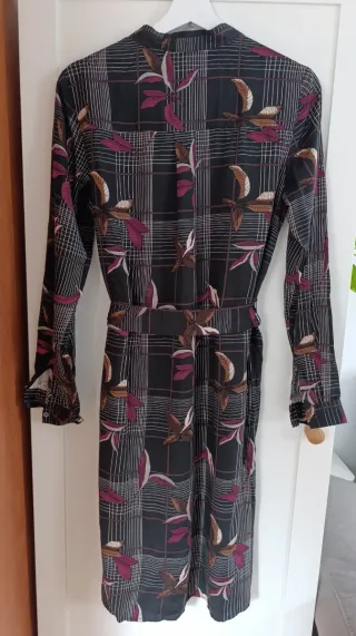 Vestido de la marca Salsa con un bonito estampado floral. - Medidas: pecho 40 cms, largo 90 cms - Diseño cruzado. - Manga larga. - Largo hasta la rodilla. - Pone XS pero el tallaje es superior