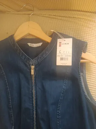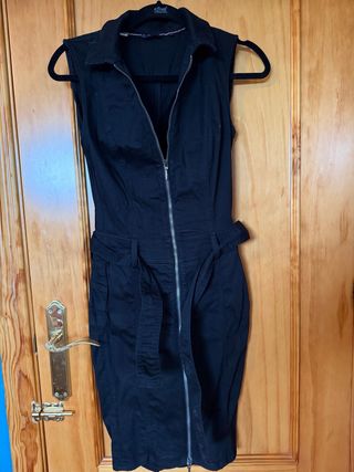Vestido vaquero de la marca Salsa en color negro. Diseño ajustado con cinturón. Moldea figura como faja, con cremallera - Sin mangas. - Cierre de cremallera frontal. - Cuello camisero. Talla S, pero talla pequeño, bien para XS, es elástico, estrecha mucho