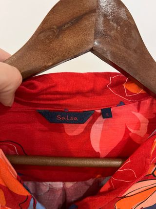 Vestido camisero de la marca Salsa con un bonito estampado floral. Ideal para cualquier ocasión. - Diseño camisero con cuello. - Cinturón para ajustar a la cintura. - Manga larga. - Estampado de flores en tonos rojos, blancos y azules.