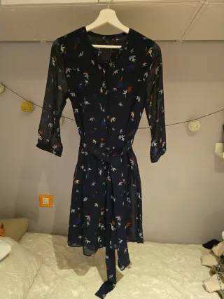 Vestido Salsa azul marino floral, talla S, escote