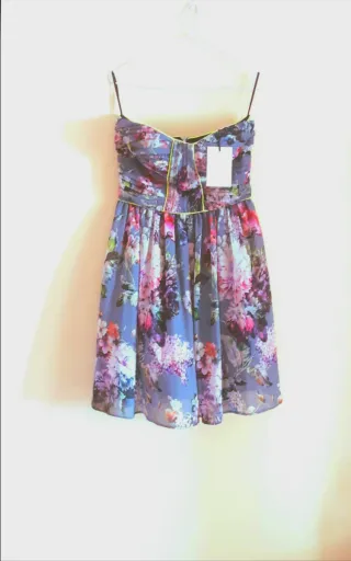 Vestido de mujer con estampado floral vibrante. ES Para una talla S de chica - Diseño sin tirantes. - Falda con vuelo. - Detalle de ribete en contraste. Preppy mangata ted baker salsa