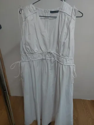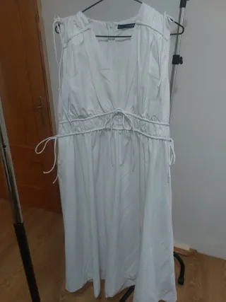 Vestido de sfera de color blanco. Presenta un diseño con escote en V y cordones ajustables en la cintura y en los hombros. - Diseño con cordones. - Escote en V. - Manga corta.