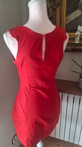Precioso vestido rojo de Sfera , tela gruesa estilo denim con cierre en el cuello y cremallera lateral. Medidas: Largo vestido: 78cm Sisa: 42,5cm Cintura:36cm #vestidomujer #vestidorojo #vestidorojotallas #vestidotallas #sfera #sferarojo #