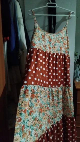 Vestido largo con un diseño de estampado floral y lunares. Es talla 38 ..pero es muy grande da para una 42..... - Tirantes regulables