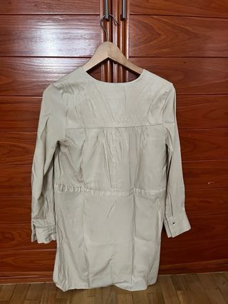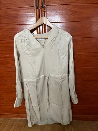 Vestido camisero de Zara con cinturón. - Manga larga. - Cuello camisero. - Cinturón de tela para ajustar la cintura. - Largo mini. - Talla Grande. - Botones dorados.