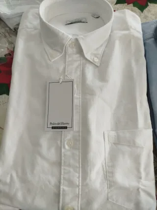 Dos camisas de vestir de la marca Pedro del Hierro, una en color blanco y otra en azul Oxford. Ambas son de talla L. Precio: 30€ cada una o 55€ las dos Regalo de navidad que me queda grande. - Camisa blanca de manga larga. - Camisa azul claro de manga larga. - Cuello tipo button-down.