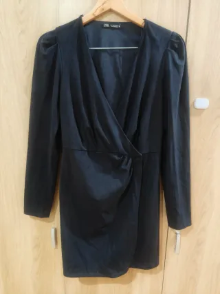 Vestido elegante de ZARA con un diseño cruzado y mangas largas. Ideal para ocasiones especiales. Talla un poco grande - Diseño cruzado. - Mangas largas. - Tejido suave al tacto.