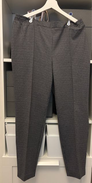 -2 Pantalones de vestir con estampado de cuadros con cintura elastica. - 1 Falda larga negra de vestir con cintura elastica. - 4 vestidos de talla grande. Regalo camiseta