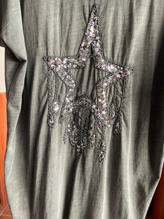 Vestido muy fresco sin estrenar talla unica equivale mas menos una M pero al ser unica se adapta a talla mas pequeña y algo mas grande.