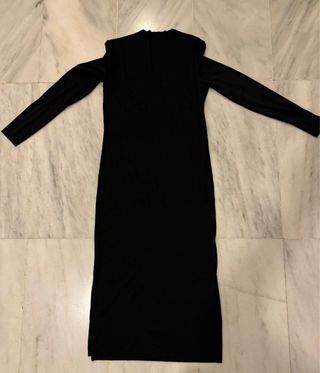 Vestido negro ajustado con aberturas laterales en los bajos. Totalmente nuevo. Mi hija le ha cortado la etiqueta antes de probárselo y le queda grande.