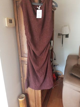 Easy Wear. Color coral oscuro, casi rojo. De viscosa y elastano, tejido muy dulce y cómodo de llevar. Goma elástica en la cintura. Cierre de cremallera en la espalda. Es la S , pero talla un poco grande, más parecido a una M. Nuevo, con etiqueta. - Tejido ligero y fluido