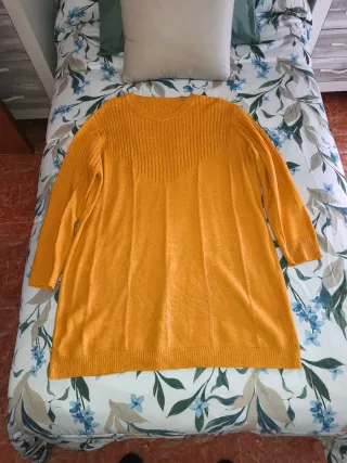 Usado una vez así que sin etiqueta pero nuevo. Al bajar de peso me viene grande. Es bastante largo. 96% viscosa y 4% elastano. Da talla. Cinturilla con goma elástica, con manga corta y zona de escote cruzada. Medidas en fotos. De Asos Curvy.